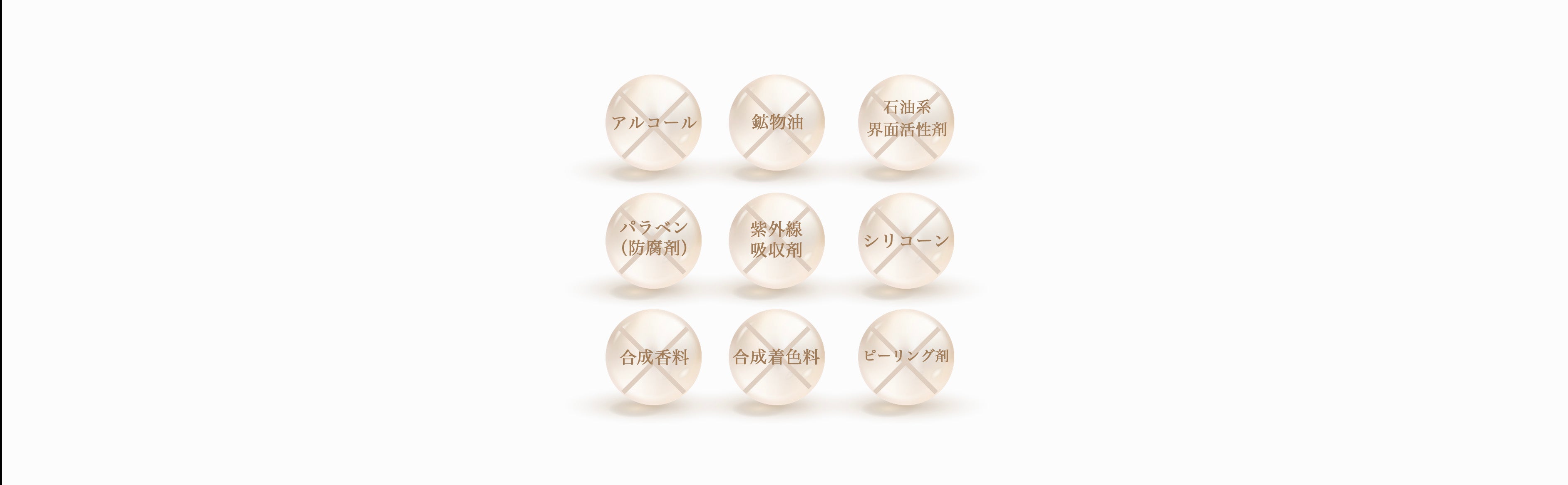 「毎日使うものだから、肌に優しいものをつくりたい。」 うちやまのこだわりで、9つの無添加処方を実現しました。