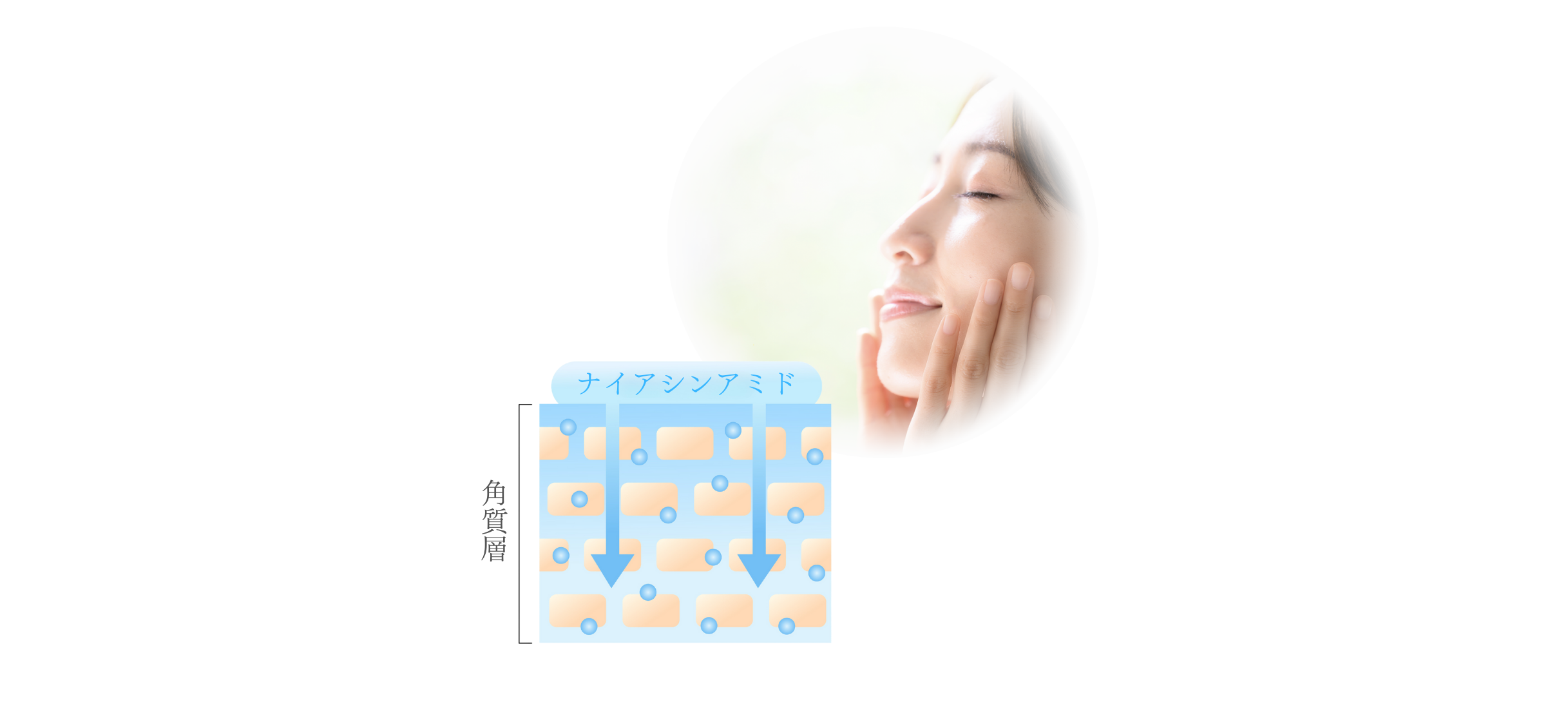 有効成分の植物性ナイアシンアミドが角層に存在するうるおい成分(セラミド)をサポート。